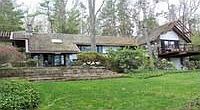 Ultra chic Mid Century. Modern lakefront Estate. Spectacular stone & stucco integrated into exterior & interior design. Three stone Fireplaces! Great Room with third fireplace and wet bar. Tennis Court! Lovely lake side sandy beach front. Artistically landscaped with structure to create a singular architectural statement. One of a kind waterfront parcel with rambling walks and walls. Great private estate or family compound. Minutes Garrison, Cold Spring. Tennis anyone?