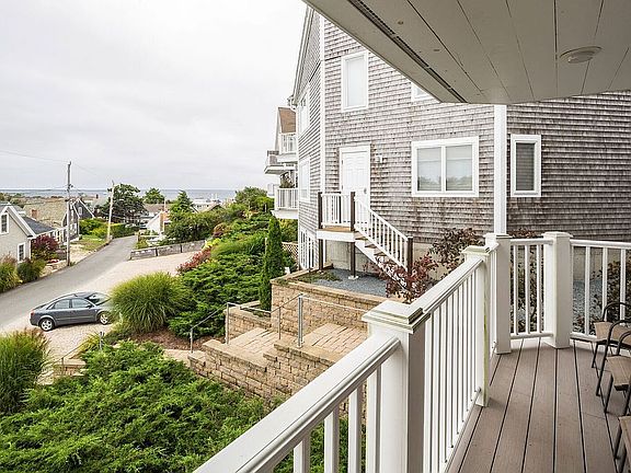 Enjoy panoramic harbor views from this 2 bedroom, 2 bath condominium at Galeforce in the West End. The unit features a recently renovated kitchen (2014) with stainless steel GE appliances, custom cabinets and white Quartz countertops. There is a large, open living and dining room, with a wood-burning fireplace, large ocean-facing windows, and a deck overlooking the bay and Provincetown Monument. The master bedroom has a large walk-in closet and fully renovated en-suite bath in travertine with a large walk-in shower. There is a second good-sized bedroom and bathroom, also renovated with travertine and Kohler fixtures with combined tub/shower. Hardwood floors installed throughout unit in 2017. Amenities include a washer and dryer in the unit, a large storage room in the building, one designated parking space, in-wall air conditioning in both bedrooms and a bike rack behind the building round out the features of the unit.