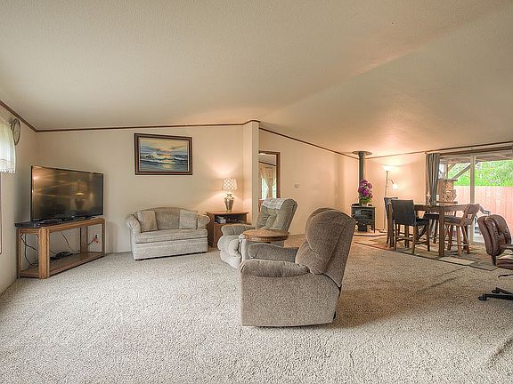 Well maintained open concept home on over an acre of land! Spacious kitchen w/island and formal dining room. Skylights and vaulted ceilings allow for natural light and an open feel to the home. Master bedroom w/walk-in closets & master bath w/garden tub & stand-up shower. 2 guest beds + utility room. Covered deck in back, small work shop, wood shed, storage shed plus 2 car detached carport. Generous sized 2 car carport. Very private setting yet minutes to dining, shopping and Highway 101.