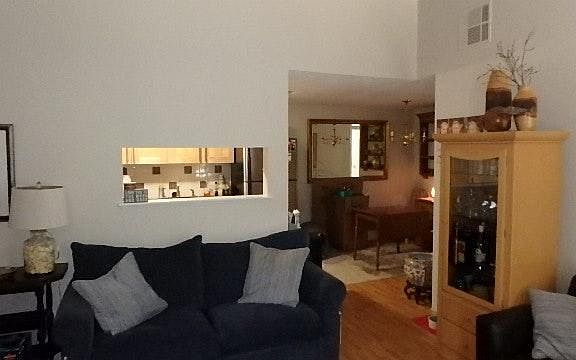 Vaulted ceiling with walk out to balcony with total privacy facing trees and wildlife..All laminate flooring ..wonderful upgrades ..wont last,,(((Please text or email))) for more information..please include your employment info, credit score needs to be 700 or over...pool, tennis, hot tub train an 8 min walk.. Tenant responsible for electric..heat and a/c is electric..must have 700 or greater for credit score..