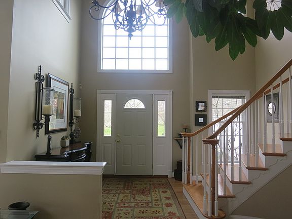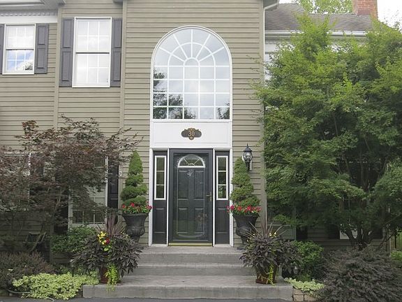 This elegant 4 bedroom, 4 and 2-half bath colonial home boasts over $200K in upgrades, including the spectacular landscaping of the backyard and pool area. Situated on a coveted outside lot, this yard is a private treed haven, with a salt-water pool surrounded by a large patio, lush English gardens, a partially covered wood deck and a hot tub. The main floor features a bright open two-story living room with elegant circular staircase. The formal dining room features a chair rail, crown molding and two lovely bay windows. The family room has a raised brick fireplace, and back staircase to the second floor. Wall-to-wall adjoining glass-paned doors open to the covered deck, with steps down to the patio and pool area. Overlooking the family room, the kitchen has granite countertops, a center island with premium cooktop, and a delightful breakfast area with its own bay. A back hall leads to a study and bedroom with full ensuite bath and walk-in closet. Stairs from the hallway lead down to the fully finished basement, complete with gas fireplace, half bathroom, built in cabinetry, pool table area, and a bright workout room with walk-in closet. The second floor offers the master bedroom suite with sitting room, and newly renovated bathroom with beautiful finishes and heated floor. There is spacious laundry room, and two other bedrooms, each boasting a full bath. Lovely and unique. Turn key beauty. Move right in!