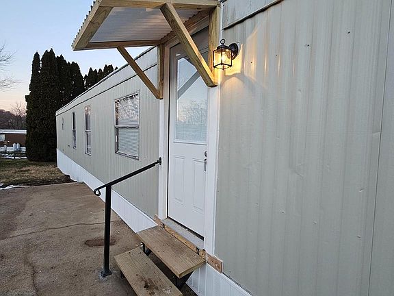 This mobile home has a TON of Updates! New painted siding, new sealed roof, brand new skirting, new front and back exterior doors with new steps and hand rails. New heat tape! New electric panel and wiring, new hot water heater, new underlayment and flooring (no soft spots!). Kitchen comes equipped with a dishwasher, stove/oven, refrigerator, garbage disposal, and a countertop microwave. It has a small breakfast/eating area and a breakfast bar for additional seating. A nice large living are is open to the kitchen. It also has 2 nice sized bedrooms, a large bathroom, and comes with a washer and dryer as well. You have your own driveway for off street parking and a nice concrete pad for a future shed or make it into a nice outdoor seating area!!