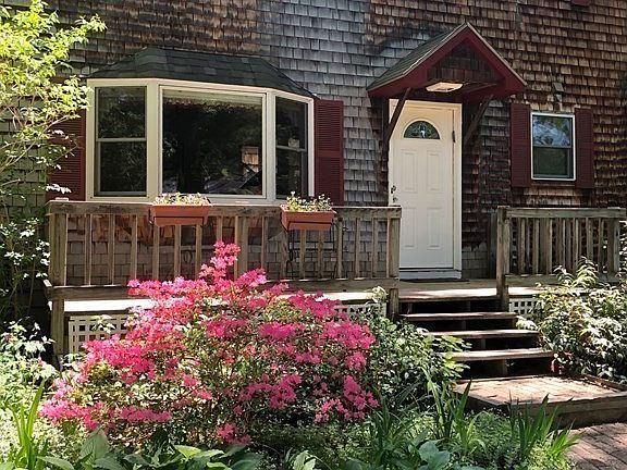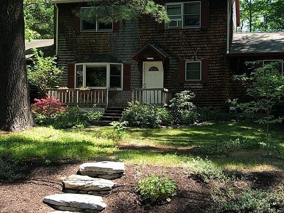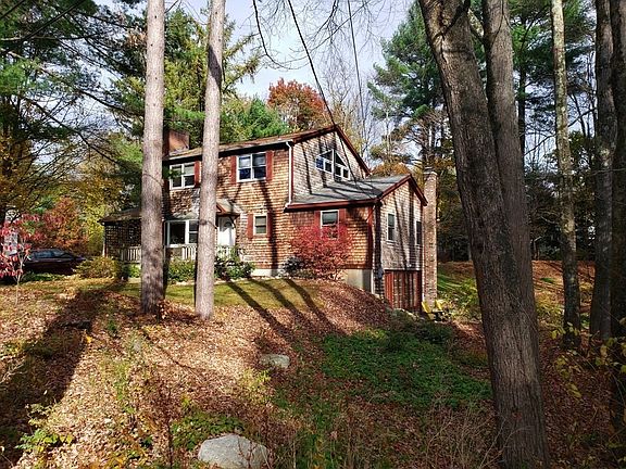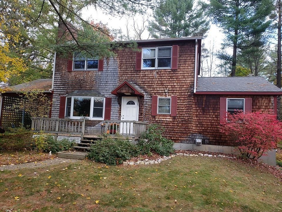 Wonderful colonial located on a dead end street surrounded by conservation land. This four bedroom two bathroom house is walking distance to town, yet conveniently located on the bus route. lots of updates in recent years. Roof , kitchen ,chimney, Buderous heating system, and floors were redone. Nice kitchen with large eat in area leads to a private deck overlooking the backyard. Living room has a nice bay window and a brick fireplace. There are two bedrooms upstairs and two bedrooms down. The walk out basement is partially finished with bookcases , wood stove hook up and french doors that lead to a sweet patio area. There is a private driveway that leads to an oversized carport with side entrance through the kitchen. All appliances to remain. FIRST SHOWINGS AT OPEN HOUSE