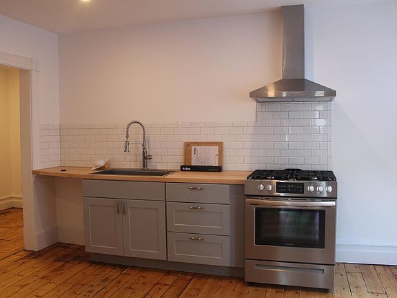 Immaculate 1 bedroom apartment available in Uptown Kingston. Start your new year fresh in this 2nd floor oasis completely renovated with classic hardwood floors and flooded with natural light. 1 bedroom suitable for a Queen or Full bed and a closet perfect for storage. Chefs' kitchen with butcher block counters and stainless steel appliances. Large living space overlooking beautiful Warren Street. Apartment is in a quiet building walking distance to shops, grocery store, and restaurants of Uptown Kingston. Easy location if you don't have a car. Express bus to NYC is a 10 minute walk. Laundry in building and street parking available. Landlord pays garbage and water Tenant pays for gas heat, electric, and internet 1 year lease Applicants should have credit score of 670 or higher Application fee of $20 for credit/background check 1st month rent, 1 month security, and 1/2 month realtor fee due at signing To schedule a viewing, please send a message with your contact information and best availability
