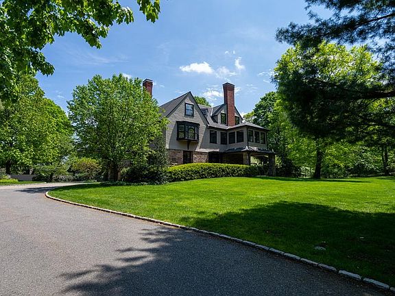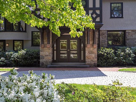 This English Revival residence was built in 1885 from a design by Peabody & Stearns. The property's location boasts ready access to Brookline Village, local universities, hospitals and downtown Boston, as well as major transportation routes and the MBTA. On the opposite side of Warren Street is the Brookline Reservoir with its mile-long walking and jogging trail. The home is set back from the street on a 0.97-acre lot that affords optimum privacy and includes sweeping lawns, magnificent mature trees and a wilderness area. The grounds were initially landscaped by Olmsted Associates, the firm founded by Frederick Law Olmsted, renowned architect of the Boston Park System and many other famous landscapes nationwide. The home is equally generous in space, style and architectural details. There are three living/family rooms, two dining rooms, two eat-in kitchens, and 8 bedrooms (most with fireplaces). The home also provides a guest suite with an additional two bedrooms and a sitting room.