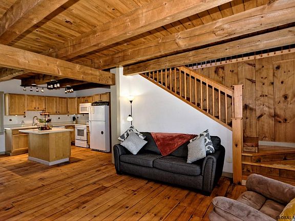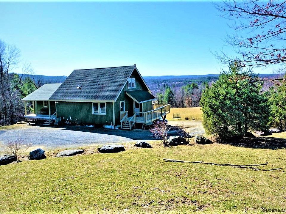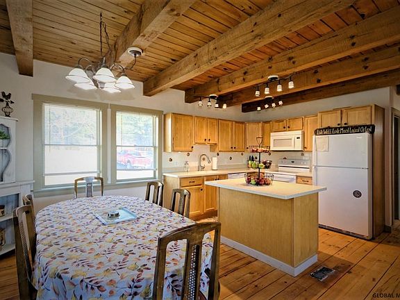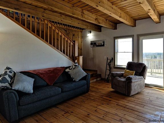 Custom home, custom views, privacy, peace - a dream come true! With pine floors, exposed beams, gorgeous kitchen with granite, new appliances and views straight to the mountains, this home is absolutely stunning! Master suite, home office, and a second bedroom are on the first floor. 3rd bedroom on the second floor is large enough to become 2. From the just painted wrap around deck you can see the barn with electric and water, the fields, fenced pastures, river and mountains in Vermont. Enjoy the mountain views in your hot tub on the deck! Energy efficient and with a southern exposure, central air, central vac, generator -- wow. Freshly painted, newly refinished floors -- this lovely home is more than move in ready. Half hour to Albany, Saratoga or skiing in Vermont! Come see it! Superior Condition, Custom Kitchen Feature