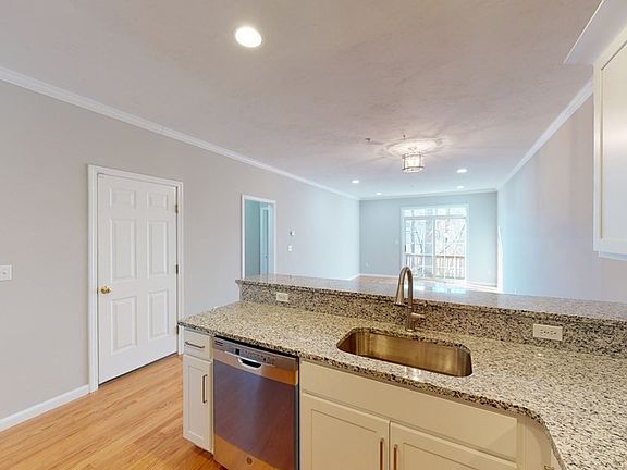 Welcome to Water View Condominiums located in a peaceful Attleboro setting! This fully refinished and turnkey condo offers a highly desirable 4 bedroom, 2 full baths which include a first-floor primary bedroom. This elegant and spacious home is just under 1,800 sq ft and showcases an open floor plan including living room/dining area open to the NEW kitchen w/ brand new SS appliances & granite breakfast bar. All new hardwoods throughout and tiled bathroom fl. The deck overlooks a private yard area with peaceful water views to enjoy. As you make your way up the stairs you will find an oversized bonus area with many multiple uses (Gym, office, playroom area, TV area, ). Huge additional space for storage in the basement and 1 car garage. 2nd floor laundry. Low HOA fees. Close to MBTA, easy to get to BOS or PVD.
