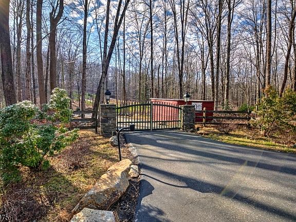 The quaint village of Mountainville is a sought-after location in Tewksbury Township which provides a serene setting for this custom-built luxury residence on 5.4 acres. Poised high above Rockaway Creek, the applied masonry stucco and stone manor promises privacy and seclusion with a quick and convenient location minutes from Interstate 78. The drama enfolds at the gated entry with a stone bridge and curving drive to the home site set far back from the road. Detailed construction methods are apparent in the hand-made wood shutters, Jeld-Wen windows and lantern-lit stone stairs leading to the covered porch entry. An elegantly-appointed interior features solid wood doors, mellow walnut-hued floors, fine millwork, stone accents and multiple sets of French doors. The centrally located gourmet kitchen is amazing: dual commercial-grade Traulsen refrigeration units and a Garland range with grill, griddle, warming shelf and dual ovens are just the beginning. An oversized granite-topped center island provides seating for five and a warming drawer below the microwave. Polished nickel fixtures, a large sink and self-closing drawers make cooking in this space a joy. The kitchen opens to the great room with a stunning fieldstone fireplace and a gallery-style hallway leading to a second gathering room and a private home office. This large space could be converted to a first-floor master suite by adding a bath and walk-in closet. It is also ideal for a large home school area with adjoining adult office space. The unique floor plan continues upstairs where three bedrooms include a master suite featuring a private bath and walk-in closet, a study nook and a walk-up staircase to the full attic. Finished spaces on the ground level include French doors to a gym connecting to a sitting area, and an au pair room with a full bath. This level could also accommodate an in-law suite on the ground level. A full workshop with storage and mechanical rooms complete this level. A Generac generator provides uninterrupted power. Tewksbury Township in Hunterdon County is celebrated for its rural landscapes, equestrian farms and open spaces. Tewksbury's quaint and historic villages of Mountainville, Oldwick and Califon offer shopping, cafes and dining, while local pick-your-own farms and abundant outdoor recreation are all nearby. Interstate 78 is a short drive from this home. Blue Ribbon schools, Voorhees High School with its acclaimed S.T.E.M. program, large-scale shopping centers, grocery stores, cultural venues, historic sites and fine restaurants are close by. Fishing, hiking, biking and horseback riding are among the activities residents enjoy in scenic local and state parkland including Christie Hoffman Park, the Ken Lockwood Gorge, Whittemore Wildlife Sanctuary and the Tewksbury Trail System. Major golf courses and country clubs, both private and public are easily accessible.