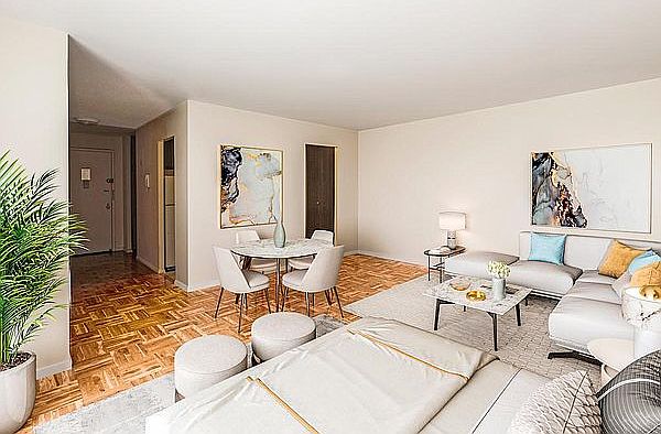 Mid floor studio apartment with classic kitchen, ample storage space, private dressing area, and south views of the plaza and river. 497 sq ft. Available 9/20.Currently offering one month free and one month OP. The rent shown is the Net Effective Rent, with 1 month free on a 12 month lease, given at the beginning of Lease. Tenant will pay the Gross Rent for the remaining months. Two-acred landscaped plaza w/ river and city views, year-round activities schedule, playgrounds, on-site preschool, free Wi-Fi, sundeck, restaurant/lounge on site, groceries, banking, dry cleaning, shopping on-site