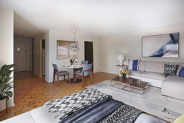 Low floor studio apartment with classic kitchen, ample storage space, private dressing area, and northerly views to the river and city. 497 sq ft. Available now. Currently offering one month free. The rent shown is the Net Effective Rent, with 1 month free on a 12 month lease, given at the beginning of Lease. Tenant will pay the Gross Rent for the remaining months. Two-acred landscaped plaza w/ river and city views, year-round activities schedule, playgrounds, on-site preschool, free Wi-Fi, sundeck, restaurant/lounge on site, groceries, banking, dry cleaning, shopping on-site
