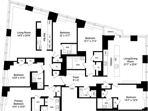 Top-of-the line appliancesExpansive wet barBreathtaking viewsSpacious primary bedroomWalk-in closetPrivate balconySoaking tub