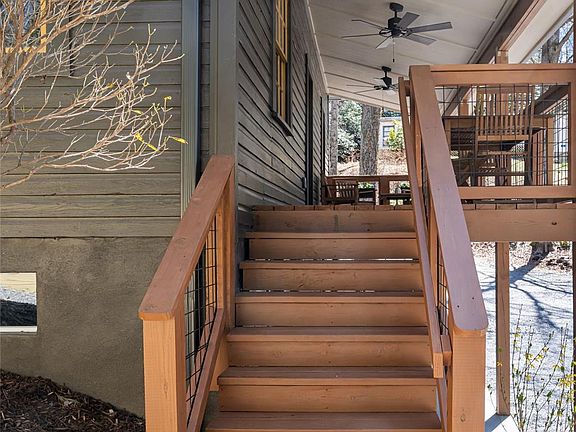 Less than five minutes to Historic Black Mountain, you'll discover this charming and completely renovated 1922 home. From the new metal roof, drywall and ceilings, windows, doors, electric, plumbing, fixtures, flooring, heat pump and mini-split and lighting fixtures, no detail has been spared. (Be sure to ask for the complete list of improvements!) Super spacious, light and bright floor plan. Lovely living area leads to the open dining and kitchen area. Primary bedroom suite with private bath as well as three additional guest rooms and full guest bathroom complete the main level. (One guest bedroom has a separate step-free entrance to home for easy access.) Follow the spiral staircase down to the lower level family room with guest bathroom and laundry. Enjoy the outdoors from the rocking chair front porch with board & batten ceiling as well as the zero-maintenance gravel outdoor spaces, perfect for a firepit.