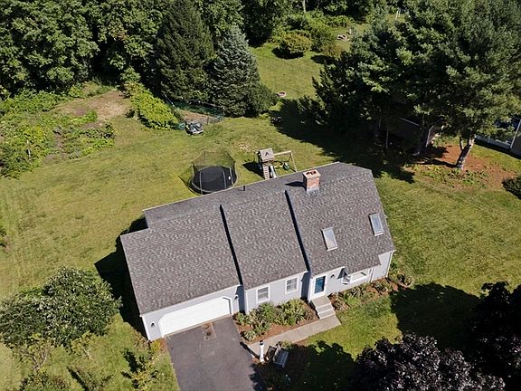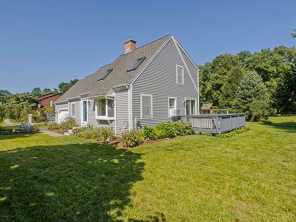 This charming 3-bedroom Cape-style home is nestled on a peaceful cul-de-sac, centrally located in town. The living room and kitchen boast beautiful hardwood floors, enhancing the home's warmth and appeal. The living room is highlighted by cathedral ceilings with skylights that flood the space with natural light, and a striking floor-to-ceiling fireplace serves as a focal point. The large eat-in kitchen features quartz countertops and provides exterior access to a spacious wrap-around deck, perfect for outdoor dining and entertaining. The primary bedroom offers ample space with a walk-in closet. The first floor bedroom offers some flex space if you need a home office or guest space. Convenience is key with first-floor laundry. The expansive backyard is a gardener's dream, complete with lush gardens and fruit trees, offering a serene retreat right at home. Located close to UMASS.