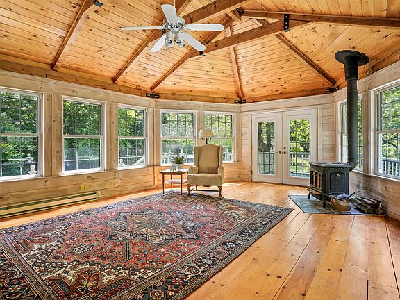 This is not your cookie-cutter home! A classic New England Cape, full of character, begins with a historic brick walkway, dry-stacked stone walls, and Espaliered apple trees leading to a lush organic garden with peach, pear, and apple trees. Hydrangeas bloom near a heated swimming pool and a charming pool/potting shed. Inside, wide pine floors welcome you into a spacious foyer with French doors opening to the living and dining rooms. The large cook’s kitchen features a Thermador cooktop, hidden range fan, new Frigidaire refrigerator, and Blanco inset sink overlooking the backyard. A bright dining nook with a bay window completes the space. Adjacent is a sunken cathedral-ceiling family room with skylights and a Hearthstone soapstone woodstove. A laundry room, walk-in pantry, and custom timber-frame 4- season sunroom with 11 wrap-around windows and a second woodstove offer unique bonus spaces. Upstairs, the primary suite includes an en-suite bath, walk-in closet, and views of the grounds. Two additional bedrooms share a full bath, plus a bonus room with full bath over the garage. The finished walk-out basement features two rooms and a ¾ bath—ideal for guests or in-law use. The 2-car garage has steel I-beam construction. Outside: two wood cribs, a firepit area, a chicken coop, and peaceful forest views complete this private, well-loved retreat. This home is a treasure tucked near amenities, but with great privacy! A home that has been cherished, come see how it makes you feel