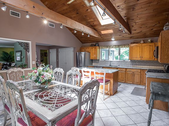 Ideal for multi-generational or the expanded family or business needs - This oversized, well maintained Hi Ranch home in Desirable Bethel Neighborhood has flexible floor plan that can easily accommodate an in-law, multi-generational family or home office needs. Vaulted Ceiling and Sky Lights create a light and bright Eat-In Kitchen, complete with center Isle and plenty of Granite counter space and Stainless Steel Appliances. Its generous size creates great gathering space for family and friends. Kitchen opens to expansive entertaining area in Dining and Living Rooms, both with gleaming hardwood floors, ng or step out into the peaceful Sunroom with it's wall of windows, which invites in natural light. Master Bedroom with full Bath along with 2 additional nice sized main level bedrooms, also with hardwood floors. Ground level includes sizable Family Room with Fireplace for cozy cool weather enjoyment. You'll find a full bath and laundry area on the ground level, too. Spacious guest room or in-law and an additional room for office, sitting room, play room or extra bedroom complete this flat to ground level - no stairs. If outdoor entertaining is your thing, you will love this perfectly level yard, complete with impressive Patio, Fire Pit and Canopied area for comfortable eating area; complete with substantial Shed for all your storage needs. Perfect for parties or just relaxing in lovely summer weather. Central Air, 2 Car Garage, 1,000 Gallon Septic system