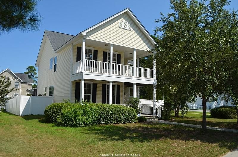 Corner lot with lake view in Bluffton Park has 3 spacious bedrooms, 2.5 baths & a screened in porch. Southern style home with double porches and a fenced yard. Fresh paint & new carpet complement the wood and tile flooring. Old carpet has been removed. Walking distance to Downtown Bluffton.