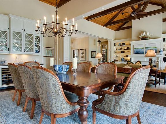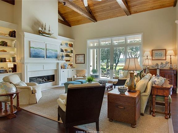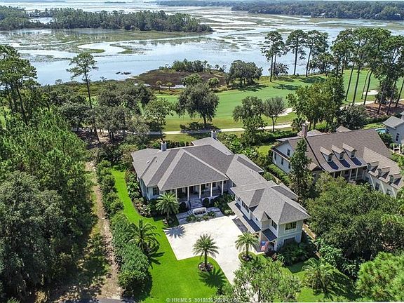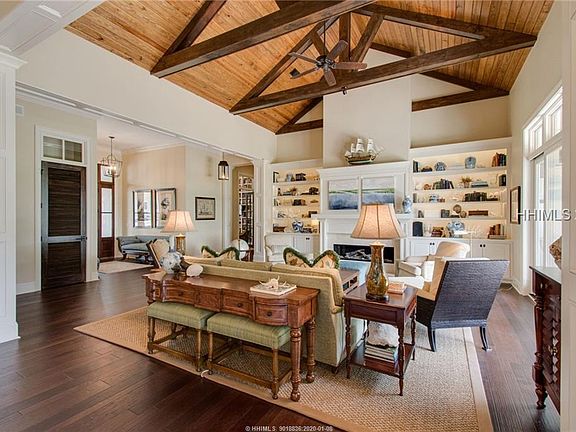 WATCH BALD EAGLES PLAY...over Colleton River's waterways & marshes. Enjoy this nature paradise from one of the best resort-style back porches ever with infinity-edge waterfall spa; inviting fire pit; screened lanai with alfresco dining, stone fireplace & large TV--awesome for football. Casually elegant interior is hard to beat: open/light floor plan, high beamed ceilings, all-Thermador kitchen, luxurious MBA, upscale cabinets/trim/countertops/Travertine & library with ladder. Huge bonus room/4th BR will blow you away - a flex space with bar/full kitchen - could be a party room, home theater, separate living quarters, office or combo thereof.