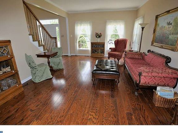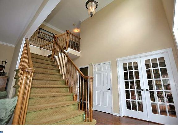 Spacious colonial with a great open floor plan in sought after Windsor Meadows neighborhood! Situated on .57 acre lot, this lovely home offers two story foyer, decorative moldings throughout, and 9 ft ceilings on first floor. Hardwood floors are found in the foyer, study, living and dining room. First floor study offers French doors and built ins. Ideal for entertaining, the formal living room flows nicely into the formal dining area. Large eat in kitchen features stainless steel appliances, center island, upgraded counter tops, ceramic tile back splash and flooring, under cabinet lighting, and pantry. Breakfast area has sliding door that leads to a spacious deck and patio that overlook the serene yard. A breakfast bar is on the half wall that leads to the family room. Step down family room features a gas fireplace with brick surround. All four generously sized bedrooms are on the second floor. Master bedroom has vaulted ceiling, separate sitting area with window seats and built ins, large walk in closet with organizer, and beautifully renovated master bath. Two of the other three bedrooms have walk in closets. Another full bath services the three bedrooms. The finished basement offers a built in wet bar for entertaining, separate sitting area, built ins, and large unfinished section for storage. First floor laundry, new driveway, 2 zone furnace and air conditioning newer 2nd zone, newly painted rooms, and more! All this within minutes to schools, shopping, and major roads such as Rt. 130, NJ Tpke, 195, and Hamilton and Princeton Junction train stations. Excellent Robbinsville Schools!