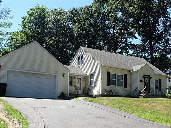 Bright and Sunny, Beautifully updated Cape style home located on the corner lot. Features: 3/4bedrooms, one of them currently used as a dining room, can be easily converted to a 4th bedroom located on the main level, fully updated bath that has wainscoting, tile floor, on the main level, 2 more bedrooms located on the upper level with fully updated bath with whirlpool, living room and dining room have hardwood floors, Eat-in-kitchen has central island, new laminate floor SS appliances, there also a French door, that leads to a patio with a level private back yard, heated 11x9 breezeway, oversized 2 car attached garage that has stained polished concrete floor and extra shelving, 200 amp service, central air. This house has it all: vinyl siding, newer windows, storm doors, roof and furnace, easy commuter location to route 8 and I-84. House has been well maintained and ready for you to move right in.