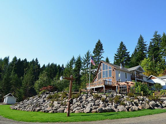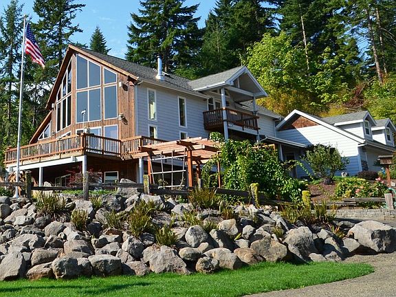 One Owner home, lower Snowden area of White Salmon. 20 Acres w/level fenced pasture and sloped wooded areas. 2 story home w/ upper level private master suite w/loft office or sitting area. Main level open design, sunny dining area with walls of windows that view the wooded land. Large deck. Daylight basement with laundry/bath, storage room, mechanic room/pantry. Walk out to patio. Landscaped yard, Hot tub. Patio. Detached 3 car garage.