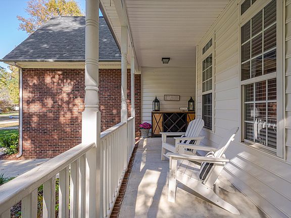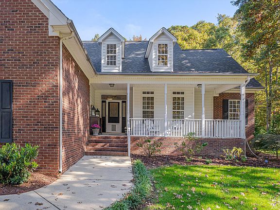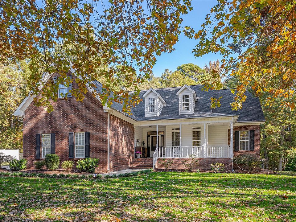 Gorgeous Spacious Cape Cod home with amazing rocking chair front porch where you can relax and enjoy listening to the birds and enjoying your beverage of choice! 3 bedrooms and 2 full baths on the main floor! Upstairs has TWO bonus rooms! Don't miss this tastefully updated home with gleaming hardwoods on the main floor! Quartz countertops, tile backsplash, stainless appliances! Custom coffee bar area off the Kitchen! Formal Dining Room with accent wall, custom trim work and trey ceiling! 2 story Living room with floor to ceiling stone fireplace! Massive deck leading to paver patio with fire pit, both overlooking the glorious back yard that is like a nature park! You will get to meet the sweet deer family that comes to the fence to get their daily feeding! Enjoy living in quiet park and country like setting but you are SO close to 401 bypass! Commuting is a breeze! Spacious Primary suite with updated extra large walk in shower and custom built ins added! The 2 bedrooms are spacious and offer ample closet space! Upstairs you have 2 huge bonus rooms PLUS additional unfinished storage! The shed conveys! Roof new in 2023!