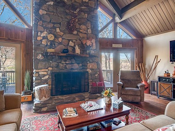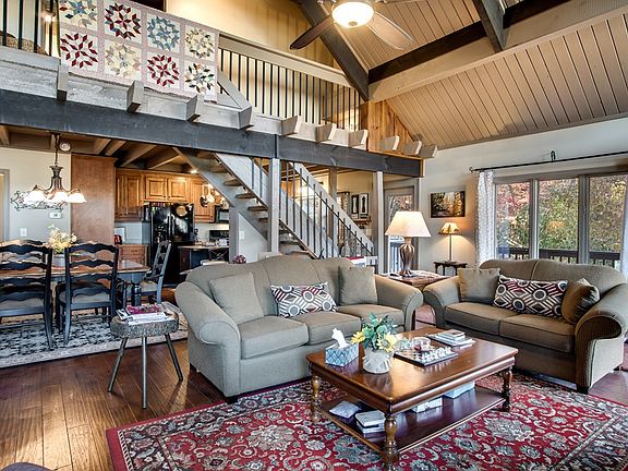 Stunning valley and mountain views from the expansive deck on this beautiful cabin in the woods. Enjoy nature and cooler temps while looking upon the meandering brook below. Private feel yet so convenient to town,with paved roads to the door. Very easy access. Large view windows and vaulted ceilings in the living/kitchen area. Beautiful cabinetry, pantry and an Island make entertaining a joy. Most furnishings, including kitchenware are included. The beautiful stone fireplace adds coziness to the room.The main level also includes a powder room for guests. Upstairs is the Master Ensuite complete with sitting area or office. Light and Bright with its own balcony with French doors. The lower level opens to patio and driveway below along with easy access to the creek area. Enjoy picnics or go wading in your own creek! The lower level includes an additional living space for watching tv or playing games, a full bath, a bedroom, bonus room currently used for sleeping and Laundry room. This home has great additional income potential or room for family and friends. Peaceful and private, this home is waiting for your private tour.