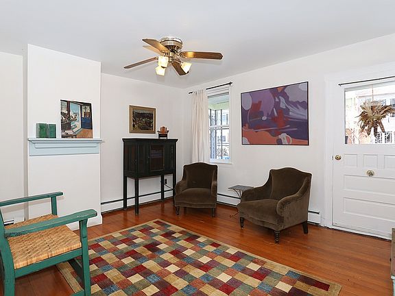 A delightful two bedroom home in the heart of Lambertville. An inviting covered front porch welcomes you into the home. Enter into the bright living room with an original mantel piece showcasing the wall with built-in shelving for books or displaying ones art pieces. Beautiful original pumpkin pine flooring throughout the home adds to the charm and character of this historic home. An open floor plan on the main level creates an airy presence. Spacious dining room with wainscoting is a great place to entertain. The kitchen size is generous, with plenty of cabinets and counters with ample room for a dining table and a sliding glass door leading out onto the sweet patio and rear yard. Garden was once on the garden tour of Lambertville and awaits its next gardener. Antique pine flooring continues on the second floor, having one large main bedroom overlooking the terrace and a charming second bedroom with a large closet. Great light, located on a nice street, just two blocks from The Delaware & Raritan Canal/Towpath and river. Minutes to the wonderful array of shops, restaurants, and galleries that Lambertville has to offer. Walk across the bridge into New Hope or enjoy boating on the river too. This home is not in the flood zone.