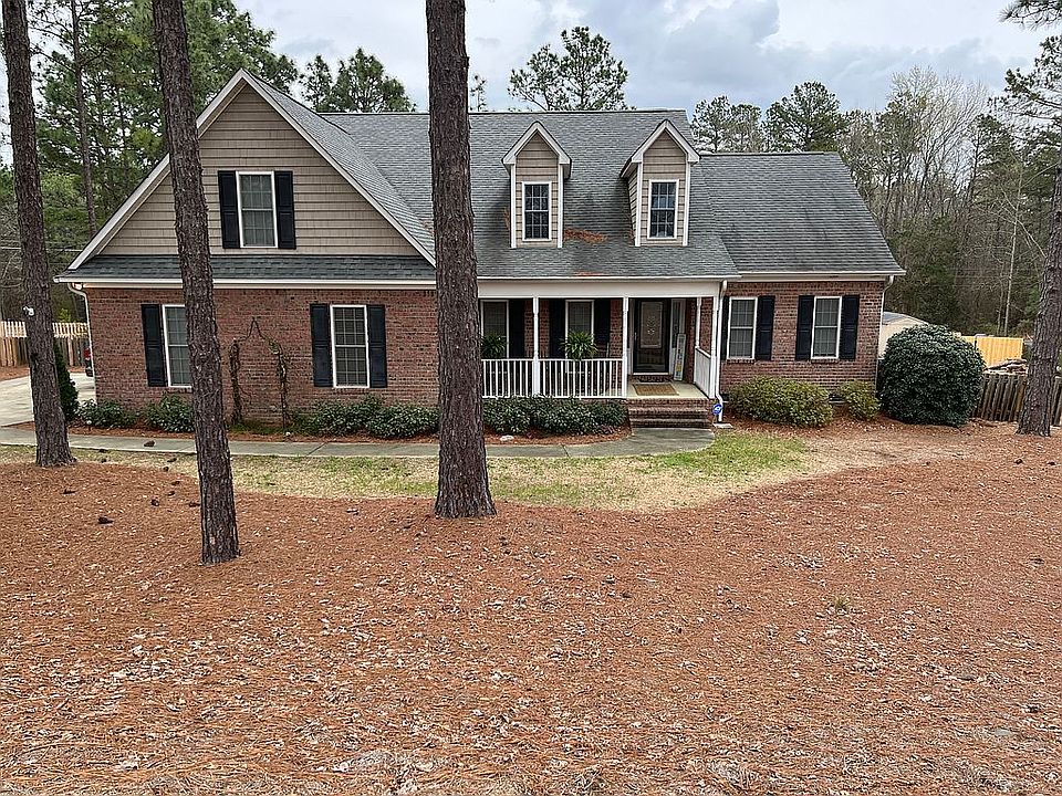 Welcome home to an entertainer's dream! This 4 bedroom home with Den/Office, in Whispering Winds neighborhood, has all the trimmings! Living room and family rooms with soaring ceilings, combine beautifully with open kitchen for great flow and feel! First floor master! Tasteful, light granite counters and two-tone cabinetry in kitchen, white uppers and green base cabinets with gold handles. A good look! Large eating area, fresh paint, and wood floors make it move-in ready! Upstairs, 3 more bedrooms with walk-in closets, a large bathroom, and a play area make this classic home the perfect home! Laundry room is pleasant with granite folding counter with sink and lots of extra cabinets. Beautiful large, fully-fenced yard (.62 acre) with an inviting in-ground pool, spacious patio and surrounding pool deck area allow for large gatherings with style and ease. Swingset negotiable. Front and back doors have keyless entry code sets, pool filter has been cleaned and salt cell was just replaced and is good for 3 more years. Polaris 360 vacuum conveys. Large shed in yard. Raised garden bed. Garage has additional laundry sink. Crawl space has vapor barrier. Residents of Whispering Pines enjoy access to 8 beautiful lakes, most with public swimming and some with a boat launch. Parks, trails and 3 public golf courses. Whispering Winds is less than 5 minutes from Harris Teeter, Ace Hardware, restaurants, and weekly errand stops. Also nearby are the O'neal School, Sandhills Community College and NC Philharmonic, as well as the Bradford Performing Arts Center. Whispering Pines is a short commute to Ft Bragg.