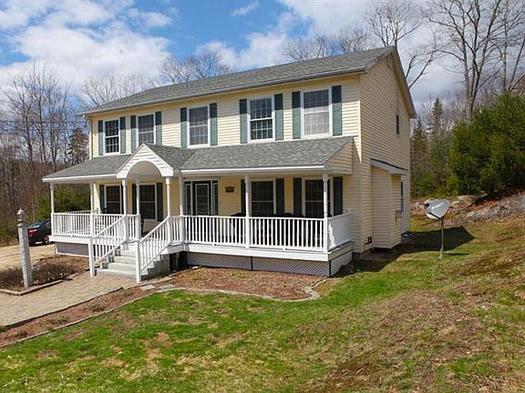Located at the end of this private road you will find this bright and spacious 2400 sq ft colonial home. Relax on the full covered front porch while enjoying the landscape and wildlife. Lovely patio/walkway and magnificent 7' granite steps and granite light pole add to the appeal. The main level has an open designed cherry kitchen w/center island and pantry, formal DR all with oak floors and French doors to the backyard. Formal living room w/ Vermont Casting propane fireplace w/custom mantel perfect for entertaining. Huge family room or den, and large half bath and laundry. Upstairs offers a master suite with huge walk-in closet and spacious master bath. Down the hall are 3 bedrooms with plenty of closet space. All windows are over-sized double hung energy efficient. Interior doors are solid pine natural finished. Full Dry Basement, Electrolux central vac system, great shed for storage, on 3 private wooded acres. Can't beat the location with easy access to: I295 (15 min). A Must See!