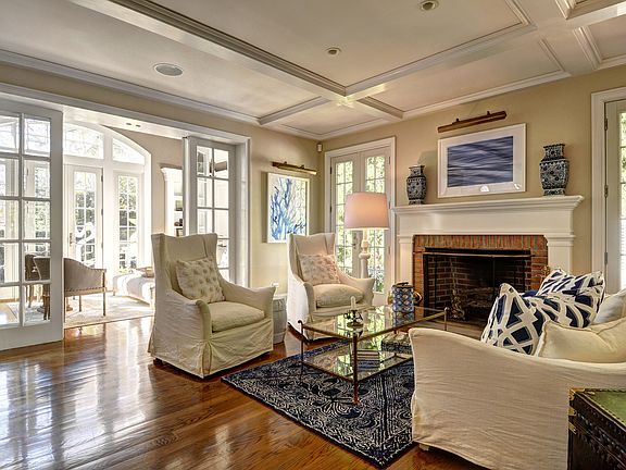 Located on a quiet East Hampton lane with summer-inspired interiors this gracious and comfortable five bedroom home offers multiple public spaces including a large, open living room with multiple sitting areas, spacious den/lounge and finished lower level offering a cozy media room with a large screen television. The gourmet kitchen with high-end appliances is perfect for the resident chef and is complimented by the oversized dining room awaiting fine fair and fun guests. For ease of living there is a first floor, en-suite, junior master bedroom with four additional bedrooms including a master-suite on the second level. Outside is as lovely as in offering a wonderful garden patio, entertaining patio with gas grill and completed by a covered patio with seating area and wood burning fireplace all overlooking beautiful gardens, rolling lawn and flanked by perimeter landscaping. Altogether, a perfect place to call home.
