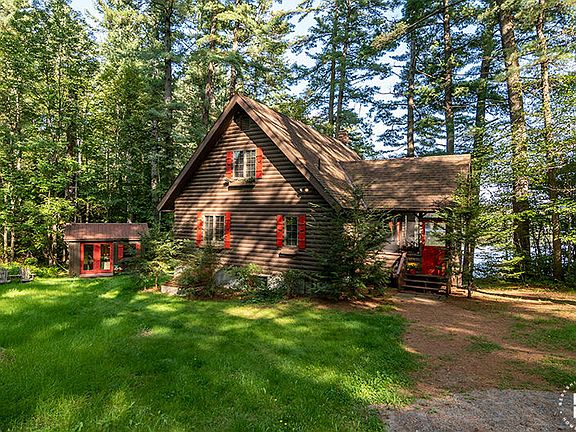Your Adirondack retreat awaits! This newly remodeled, turn-key compound has everything you need. Picture yourself in this spectacular Adirondack setting on almost 2 acres of pure wilderness bliss. With 100 feet of waterfront and breathtaking mountain views, this is not just a house; it's a sanctuary. The many upgrades include an open floor plan, natural wood floors, vaulted ceilings with custom stonework chimney, a screen porch and chef's kitchen with granite countertops and stainless steel appliances. The kitchen flows seamlessly into an awe-inspiring A-frame living and dining area, where a 20-foot-high vaulted ceiling creates a cathedral of light and space. The floor-to-ceiling windows and twin glass french doors lead you to an elevated deck... your front-row seat to the breathtaking panorama of Wolf Pond. The main floor boasts a full bedroom and a beautifully upgraded bathroom, complete with a frameless shower glass door, designer tile, and a custom-fabricated wood slab vanity with vessel sink. Upstairs, the upper lofted area houses a second bedroom, currently a cozy den, and an office niche. Descend to the walk-out lower level, where a massive primary suite beckons. Twin sliding glass doors provide direct access to a sprawling patio adorned with brick pavers and fire pit, where starlit evenings and lakeside stories await. The primary bedroom is so spacious that it can easily be divided into two rooms, offering flexibility to suit your needs. The primary suite also features ample closet space and a fully updated bathroom, ensuring that every day here feels like a spa retreat. Side-by-side laundry and ample storage complete this floor. Making this unique compound even more special is a studio building (currently used as an artist's studio), a detached, 2-car garage, boat rack, wood shed and floating dock. Located in the heart of the Adirondacks, you're just a short drive to the iconic Lake Placid and outdoor playground of Saranac Lake.