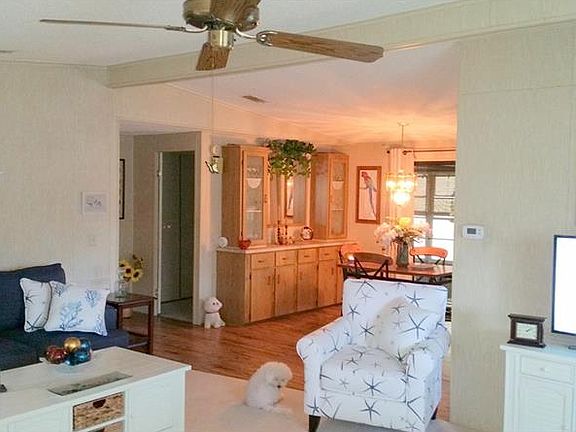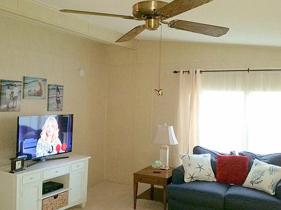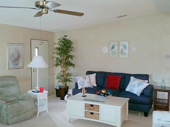 Room to roam in this exceptionally well kept, 1296 square foot triple wide in beautiful Ridgewood Meadows. You need only to bring your personal belongings as this TURN-KEY sale includes all furnishings and appliances. The air conditioner was replaced in 2013, the refrigerator in 2014 and the majority of the furniture is less than one year old. Laminate flooring was installed recently in the kitchen and dining area as well as the hallway. The master bedroom is 12' x 20' and includes a walk-in closet. Additional living area is afforded by the large screened in Florida room. Ridgewood Meadows offers the safety of a manned guarded entrance, lawn maintenance, community recreation center, pool/spa, shuffleboard and tennis available. This 55+ living community offers nearby shopping, restaurants, medical offices, post office and is conveniently located next to Manatee County's Rocky Bluff library.