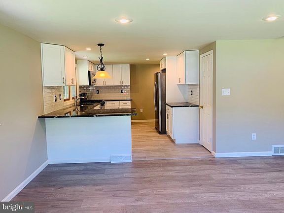 Easy one floor Living in this fully remodeled half brick front rancher with great open floor plan. Wide plank engineered laminate flooring throughout. Spacious Living Room with recessed lighting and picture window is open to updated kitchen with granite counter tops, solid white wood shaker style cabinets, subway tile back-splash, all new stainless steel appliances, undermount sink with double windows over sink. Master bedroom with his and her closet and recessed lighting. Fully updated Hall Bath. Two additional bedrooms with recessed lighting. Full basement with utility tub, washer and dryer. Covered patio with railing. Nice level, fenced back yard.
