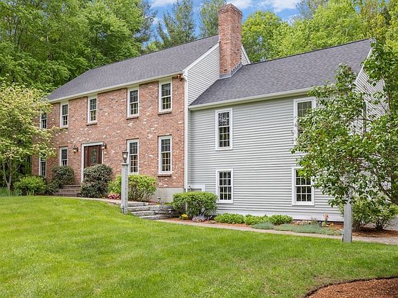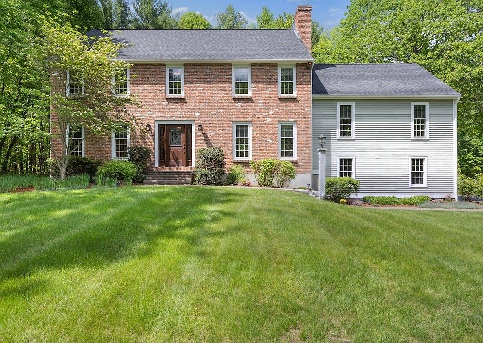 Prestigious Woodstone Estates is one of the best sought-after tree-lined subdivisions. This stunning brick front Colonial located on a gorgeous, landscaped 1.8-acre lot, abutting conservation land. Tastefully decorated throughout with a welcoming foyer, formal living room, dining room & home office all w/ hardwood floors. Renovated kitchen w/large quartz center island & separate dining area boasts a generous amount of space for cooking & entertaining. Custom backsplash, quartz countertops, updated cabinets & ss appliances. Impressive family room w/ vaulted ceiling, full-wall fireplace & oversized windows adding great natural light, Spacious primary suite has walk-in closet & hardwood floors. Updated primary bathroom w/ custom tiled shower, granite counters, dual sinks & skylight. Second floor with three additional bedrooms w/ closets & hardwood floors. Additional updated 2nd flr bathroom w/ tub &shower. Large deck. Central Air. Great neighborhood with easy access to major highways.