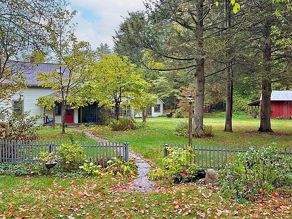 Antique warmth meets state of the art systems. The front of this house is a post and beam antique with a beautiful stone fireplace that has a recent wood insert, sitting room, Living room and dining room with two bedrooms and a bath upstairs. The framed addition in rear has a modern kitchen and bath and master bedroom upstairs. Both baths have been recently updated as has the kitchen. Very recent post and beam garage has storage and solar panels on roof that supplement panels placed at edge of field earlier. Basement has newer Buderus boiler, hybrid hot water heater and a battery storage system to supply the house when power goes out that has its own subpanel to critical house services like heat, water, fridge and lights. Screened porch off the kitchen is mahogany, patio outside dining room is Goshen Stone. Two more outbuildings have potential for horses and guest cottage. Meadow of over an acre is an opportunity for equestrian use. Swift River reservation land is across the street.