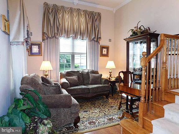 Highly sought after 55+ Flowers Mill now offers a single home with the largest available floor plan at 2,204 sf, the stunning Winterthur Model. The impressive foyer with striking crystal chandelier, open oak staircase, and 2-story ceiling leads to an Elegant Formal Living Room with crown molding details, custom drapery with silhouette shades, a vaulted ceiling, recessed lighting and faux wood laminate flooring. The Formal Dining Room is graced by another crystal chandelier, recessed lighting, double window, wood-look floor and coat closet. The Gourmet Kitchen is a chef's dream come true. Top of the line appliances include a Double Wall Oven with Convection Cooking, Gas Cooktop, Stainless Refrigerator with water/ice dispenser, and built-in microwave. The 42" Upgraded Cherry Cabinetry, granite counters, decorative tin backsplash, an organized pantry, double-stainless sink with new faucet and disposal are sure to wow every chef and baker. The Kitchen Island has a beautiful overhead lighted pot rack, an ideal focal point for gathering family and friends. Open to the kitchen is a desirable Family Room with wood-look floors, cathedral ceiling with recessed lighting, 2 windows with pleated shades and surround sound. The family room opens to a Sunroom Addition featuring tile floors, double windows with custom Roman shades and Sliders that open to maintenance-free 12' x 23' deck with open views. Highly desirable main-level master bedroom has new carpet, volume ceiling and an organized walk-in closet plus an elegant dressing room (could also serve as a den or office). The en-suite master bathroom with double vanity, decorative light fixture, shower and jetted Jacuzzi tub serve as your private oasis. Upstairs is the 2nd bedroom, full bathroom, loft area, and a large storage room. Completing the first level is a powder room, Laundry Room (with shelving and utility sink), and access to the 2-car Garage with more shelving for your storage. Finally, an enormous unfinished basement is pre-plumbed for a bathroom and provides unlimited storage and potential for additional living space. Worth Mentioning: 2017 HVAC; 2016 Water heater; pre-wired for sound system in LR, FR, MBR & Loft; thermostatically controlled attic fan.