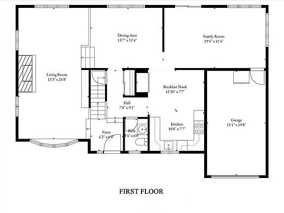 - Kitchen, Bath Half, Living Room, Dining Room, Family Room, 4 Bedrooms, Bath Full, Bath Main, None