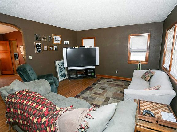 Nice property to live in or rent out. Main floor living on a corner lot with mature trees. Living room and dining room have hardwood flooring, lots of natural light, textured walls finishes, and nice little wall niches. Bedrooms are carpeted and have the same wall finishes and niches. 3 Seasons room. Large 2 car garage has particle board walls. Upstairs loft offers lots of space and a full bath with claw foot tub and separate shower. Unfinished lower level has concrete floor and offers tons of storage space.