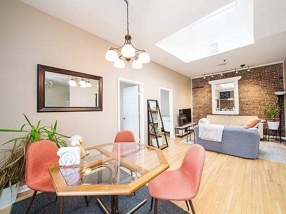 Live in this top floor, spacious 2 bedroom, 1 full bath condo in downtown Hoboken. This sun filled corner home has southern and eastern exposures, living area with a sky light & exposed brick, a modern galley kitchen with stainless steel appliances, hardwood floors throughout and central a/c. Both bedrooms are of equal size. Laundry in the building. Perfectly located in the heart of downtown Hoboken, close to shops, restaurants and parks and a short distance to the PATH and ferry to NYC. Available Nov 1st. No pets. 5th floor walk up.