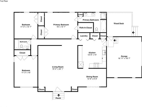Home Features and Amenities: Air Conditioning, Deck, Garage, Granite Countertops, Long Lease Terms, Luxury Vinyl Plank, Pet Friendly, Primary Bedroom on Main, Recessed Lighting, Single Story House, Smart Home, Stainless Steel Appliances, Walk in Closet, W/D Hookups, and professionally managed by Invitation Homes.
