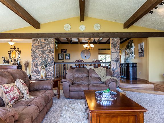 Beautiful ranch style home in north Mandan! Enter into the stunning main floor living area that features a gorgeous fireplace, vaulted ceilings with exposed wood beams, and massive windows bringing in so much natural light. From the living room, you will find a large formal dining room with great space to entertain guests. Attached to the great kitchen, is a second smaller dining area. Also on the main floor, are three bedrooms and a full bathroom with a double vanity. Down in the large basement, there is a family room with plenty of comfortable space, a ¾ bathroom/laundry room, one bedroom, and a storage room. Large two stall attached garage, and a large, gorgeous fenced backyard with lots of land, a deck, patio and beautiful landscaping. The vinyl siding is also insulated! Come make this home yours! The side lot is apart of this property as single garage used for storage. So much space! Oversized attached garage has additional door for awesome access and storage. This house has character and charm! You won't want to miss it.