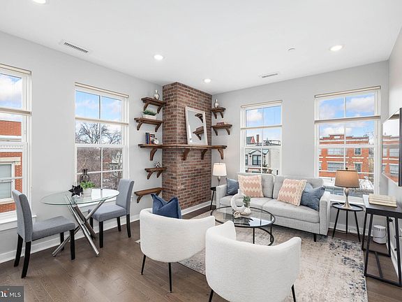One-of-a-kind modern two bedroom, two bathroom corner condo on the top floor of The Boneval one block from Stanton Park on Capitol Hill. The dazzling open floor plan features an exposed brick accent wall with open shelving, wood floors, and 9' ceilings. Enjoy cooking in the bright kitchen with stainless steel appliances and wide breakfast bar with pendant lighting. Near floor-to-ceiling windows offer abundant natural light in the living room and bedrooms. The primary bedroom features an exposed brick accent wall, and custom walk-in closet, plus en suite bathroom with double vanity. The second bedroom, currently outfitted as an office offers walls of shelving. This bedroom's built-in bookshelves can be removed by the seller, at buyer's option, to make more space for a bedroom. <br> <br> Enjoy a shared rooftop space, gorgeous gathering room, and contemporary lobby. An assigned garage parking space, directly adjacent to your own large private storage space, conveys.