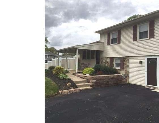 Wow, take a look at this huge corner split level with customized fencing throughout the perimeter of the property. Owners enlarged the master bedroom making this currently a 2 bdrm which can easily be converted back at buyers request. The newer kitchen has 42" honey maple cabinets and granite counter tops. The dining room has oak french doors leading to the 3 concrete stamped patios for your summer barbecue. This freshly painted home has hardwood flooring, custom crown molding and 6 panel doors t/o. The energy efficient HVAC system and hot water heater is 3 yrs old. The 3 car driveway parking accents the huge yard. This home is within walking distance to schools and the local park. Won't last, make your appt today!