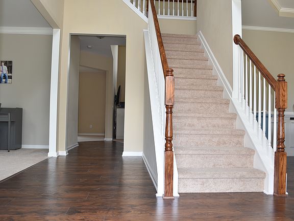 - Interior: Foyer - Entrance, Ceilings 9 Ft Plus, Double Vanity, Pulldown Attic Stairs, Walk-in Closet, Ceilings - Trey, Hardwood Floors, Carpet, Foyer - 2 Story