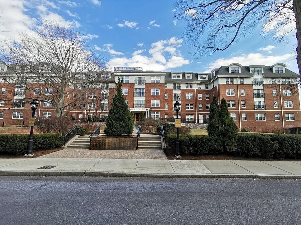 A spectacular penthouse unit at The Monarch, a luxury modern building on the Brookline line. With large windows, this corner unit is bright and very quiet, and faces the beautiful front garden with mature trees. Rooms are spacious. A bonus room off the living room with french doors can serve as a guest room/office. The comfortable dining area is in the center with recently installed hardwood floor. Many features include beautiful kitchen with granite counters and stainless appliances, brand new bathroom with huge shower. Plentiful closet space. In unit laundry. Central air. Onsite deeded parking. Well maintained elevators. 100% owner-occupied building. Onsite superintendent. Walk to the "B" or "C" line. Whole Foods is next door.