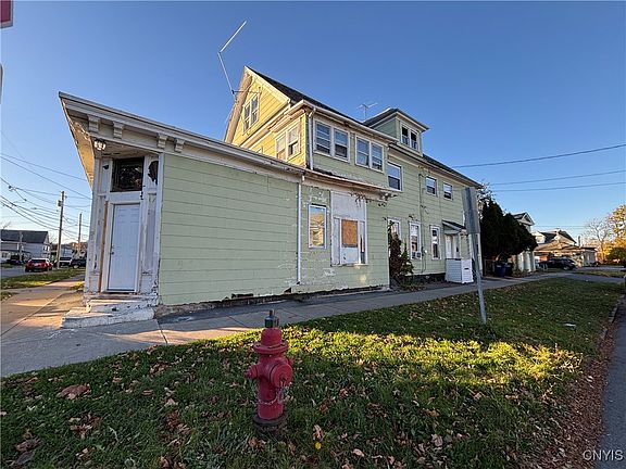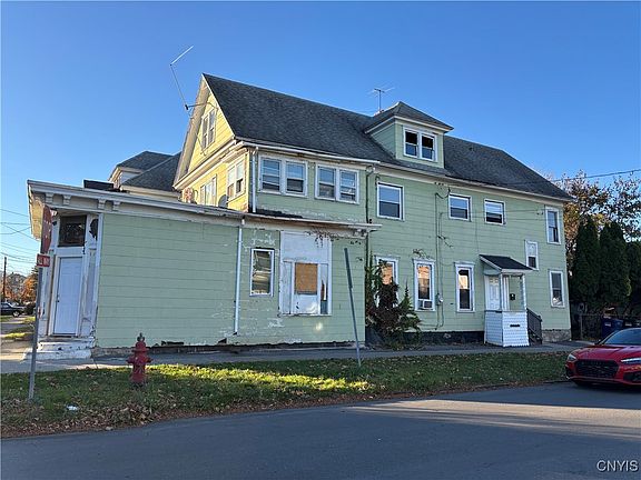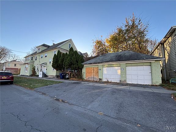 Property currently has 2 units rented out with the front unit vacant and construction incomplete. The back side of building has 2 units, one up and one down. Upstairs has 4 bedroom, downstairs unit has 1 bedroom. Upstairs rents for $1,300 and the lower unit rents for $900. There are 3 garage bays included as well. Property being sold "as-is".