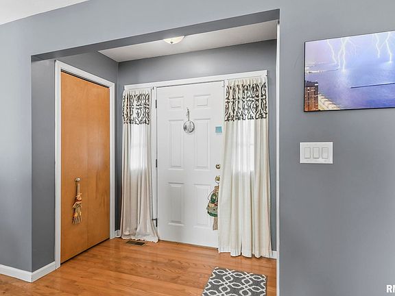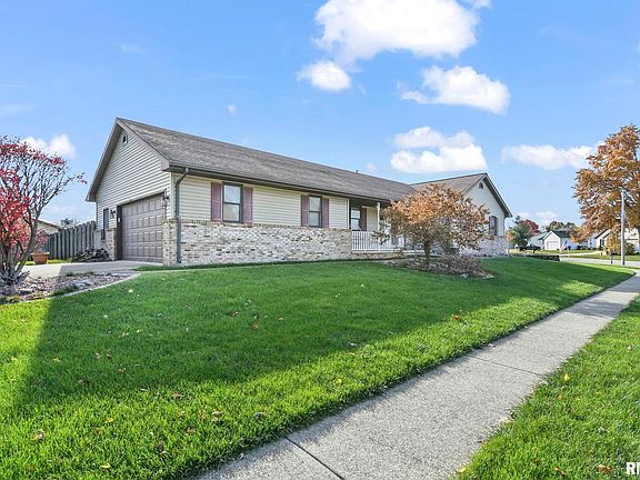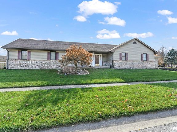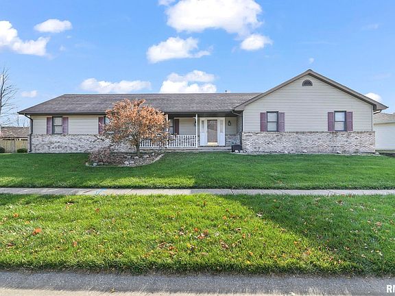 Ranch in Pleasant Plains school district, finished basement with rec room, family room, den/bonus room, bar area and half bath. Kitchen has breakfast bar, living room has vaulted ceiling, fireplace, hardwood floors, master has full bath and walk-in closet. 2.5 car garage with cabinets, insulated door, large privacy fenced yard, alarm system, battery back-up sump, total of 2800 SQFT. Some personal items can stay or be purchased, including washer and dryer.