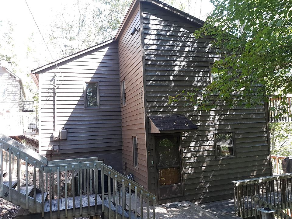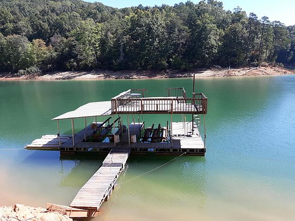 Ahhh... Peace & Tranquility....This contemporary lakefront cabin is nestled on a wooded, rolling lakefront lot with year round water on glistening Norris Lake. This home is perfect for year round living or vacation home. Master suite has cathedral ceiling & walk in closet, & patio doors to decking facing water. 2nd bedroom also has patio doors. All bedrooms have their own baths - Great for guests! (Home perks for 2 bed but has 3). Spacious Great Room has wood burning stove - Perfect for those chilly Fall evenings! Need room for all your toys and boat? Look no further! This one features a 3 car garage - featuring a 10 FT door to accommodate a boat. Home also has a 2 story 2 bay dock w/2 lifts & 2 jet ski ports, PLUS a level area by the lake perfect for a fire pit. This home has it ALL