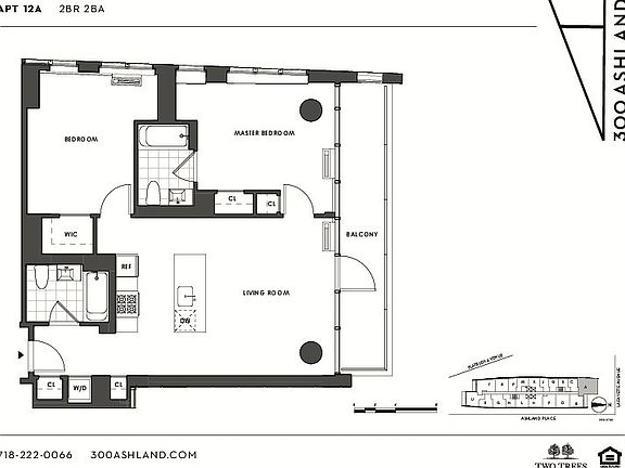 *Net effective rate based on a 12 month lease. Gross Rent: $5795/month. Spacious corner 2BED/2BA unit offers a private balcony with floor to ceiling windows off the living room. Unit features white oak hardwood floors, Bosch washer/dryer, stainless steel Bosch kitchen appliances, stainless steel and Caesarstone countertops, custom closet shelving and finishes, solar shades throughout apartment, in-sink garbage disposals, Hans Grohe bathroom fixtures, keyless electronic apartment access, LED energy efficient track lighting, Corian window sills, large ceiling-height windows offering great natural light. Building Overview: 300 Ashland offers all the amenities and convenience of a modern building alongside the vibrancy and culture of classic Fort Greene, Brooklyn. Our Studio, 1 Bedroom and 2 Bedroom residences were thoughtfully designed with high-end finishes, panoramic views, and full-service resident amenities atop diverse cultural programming. The first nine floors of our building include BAM cinema theaters, a branch of the Brooklyn Public Library, MoCADA, 651 ARTS, a 365 Whole Foods and Apple store. With 11 subway lines just steps outside your door, 300 Ashland is truly UNLIKE ANYTHING, IN THE MIDDLE OF EVERYTHING! Building Amenities include: 24 Hour state of the art Gym with studio offering a variety of classes Outdoor Roof Deck designed by James Corner Field Operations, same designers as The High Line BBQ Grill Station Resident Lounge with work-from-home space and WiFi throughout Valet Services with Cold Storage Parking Garage in Building Keyless electronic apartment access Bicycle Room Stroller Parking 24 Hour Front Desk Concierge