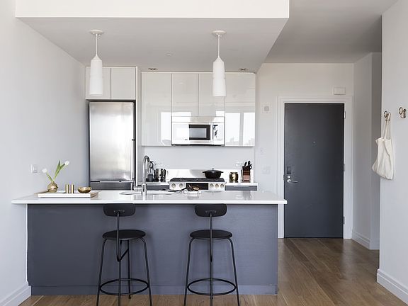 *Price advertised is net effective and includes one month free. The gross price is $4530. Large Corner 1BR/1BA with Balcony, facing South and East with unobstructed city views, open kitchen w/ Island, Walk-in-Closet, washer/dryer. This coveted king sized unit features a spacious layout with white oak hardwood floors, Bosch washer/dryer, stainless steel Bosch kitchen appliances, Caesarstone and stainless steel countertops, Caesarstone kitchen islands, walk-in closet (WIC) with custom closet shelving and finishes, solar shades throughout apartment and bedroom blackout shades, in-sink garbage disposals, Hans Grohe bathroom fixtures, keyless electronic apartment access, LED energy efficient track lighting, Corian window sills, large ceiling-height windows with southern and eastern exposures offering great natural light and panoramic views of Brooklyn and New York City, Balcony with floor to ceiling windows off the living room and soaring views of Brooklyn.;Building Overview 300 Ashland: the newest addition to Fort Greene, where all the amenities and convenience of a modern building live alongside the vibrancy and culture of classic Brooklyn. These Studio, 1 Bedroom and 2 Bedroom residences were thoughtfully designed by world renowned architect, Enrique Norten. The dynamic 379-unit luxury building connects modern residences with the Fort Greene community. Centrally located at a unique triangular intersection in the heart of the Brooklyn Cultural District, this iconic building houses luxury apartments with panoramic views, high-end finishes, and full service resident amenities atop diverse cultural programming such as BAM Cinema theaters and a branch of the Brooklyn Public Library. With 11 subway lines just steps outside your door, 300 Ashland is truly UNLIKE ANYTHING, IN THE MIDDLE OF EVERYTHING The entire 29th floor club level offers a resident lounge and 24-hour state-of-the-art Health Club, with spectacular views in all directions. Adjacent to the amenities is an outdoor rooftop terrace designed by James Corner Field Operations, the same designers of The High Line. There you can take it all in comfortably from dedicated lounge areas, sun decks, and seating areas or grab a moment of solitude in the tranquil yoga platform. Across the street from BAM and featuring BAM Cinemas within the building itself, 300 Ashland is at the center of Fort Greenes cultural scene. A branch of the Brooklyn Public Library, a 651 ARTS dance studio, and art exhibitions by the Museum of Contemporary African Diaspora Arts, all within the building, ensure you can always find art and inspiration just an elevator ride away. Building features include: 24 Hour Front Desk Concierge 24 Hour Gym with state of the art cardio equipment, free weight area, and yoga studio Outdoor Roof Deck with lounge areas, table seating and yoga space designed by James Corner Field Operations, same designers as The High Line Resident Lounge with panoramic views of New York City Package Room/Valet Services with Cold Storage Parking Garage in Building Keyless electronic apartment access Washer/Dryers in every unit Bicycle Room
